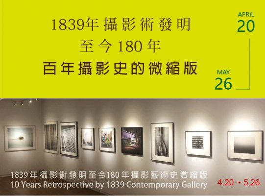 1839當代藝廊於2009年四月誕生至,十周年的回顧展,展出作品從傳統黑白銀鹽作品、藍晒、白金照片、彩色照片及已停產的西北照片,至現今的數位攝影有如一部百年攝影藝術史的微縮版。 Continue reading
